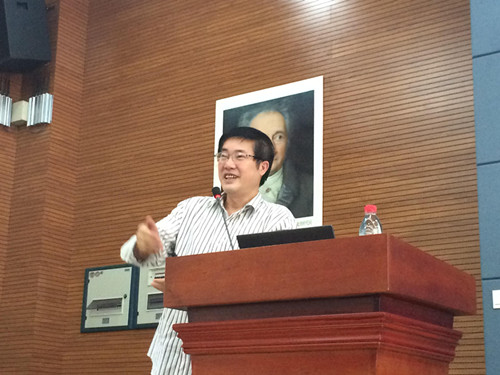 谢教授的讲座以《约翰福音》的第1-18节为例,从英文版中的核心词汇“GOD”、“WORD”等词汇追溯至古希腊的原文本本义,进行了深入浅出条分缕析的分析和阐述,并与台下的师生进行了交流和互动。从讲座中不能看出,谢教授的语言功底之深厚,涉猎的知识面之广和学术研究态度之严谨,其幽默风趣的讲座风格更让我们对这位大家留下了很深的印象。讲座的主题明确,举例丰富,涉猎的学科内容较多,如:翻译学、宗教学、哲学等,但教授的讲解深浅适度,让大家享受了一场充满哲学思辨的饕餮盛宴。接下来,现场的师生和谢教授进行了互动,气氛十分活跃。李龙泉教授做了简要总结,上午的讲座在一片热烈的掌声中画下圆满的句号。