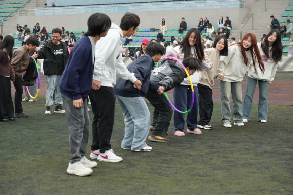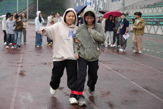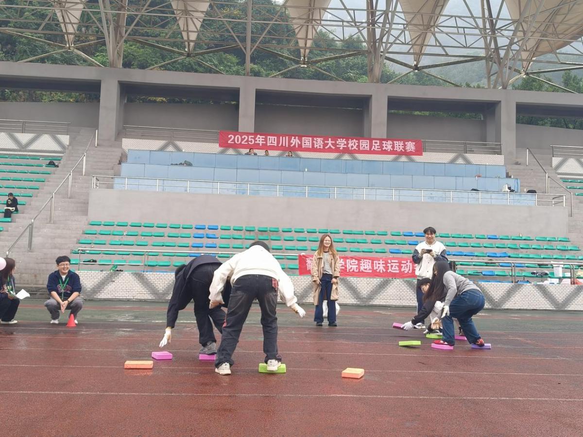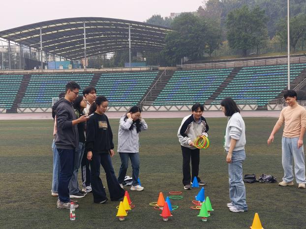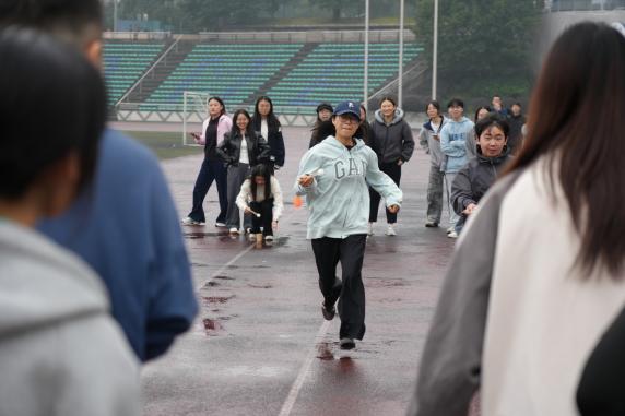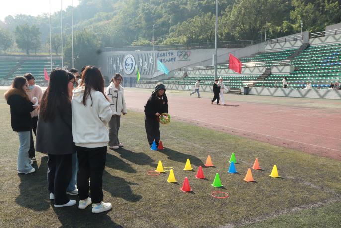 同时作为工作人员和参赛选手,2024级笔译3班的潘美利同学表示:“我能感受到同学们在现场的热情,并且我也能融入其中。我发现,‘一圈到底’项目需要队友间快速反应,我们互相提醒调整动作,最终拿到了不错的成绩,感受到了彼此信任的力量。”