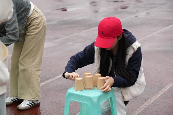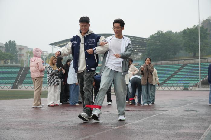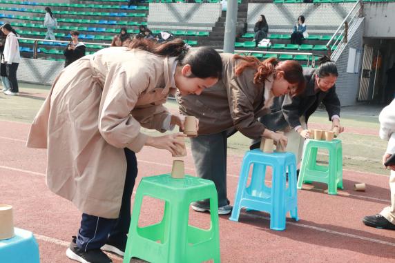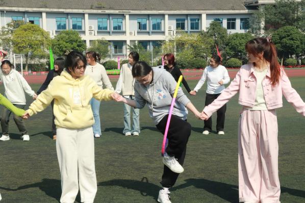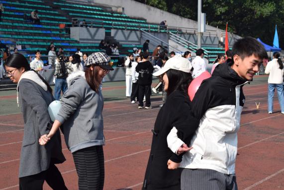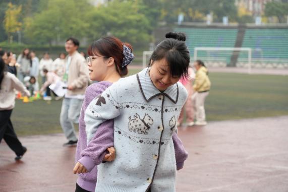团体赛中,“两人三足”考验协作能力,选手们捆绑脚踝协同前行;“一圈到底”“背对背拥抱”“筷子功夫”“纸杯叠放乐”等项目,综合考察团队配合力。同学们踊跃参与,热情高涨,在比赛中展现出蓬勃的朝气与良好的团队精神。整个赛场洋溢着欢乐与友谊的气氛。