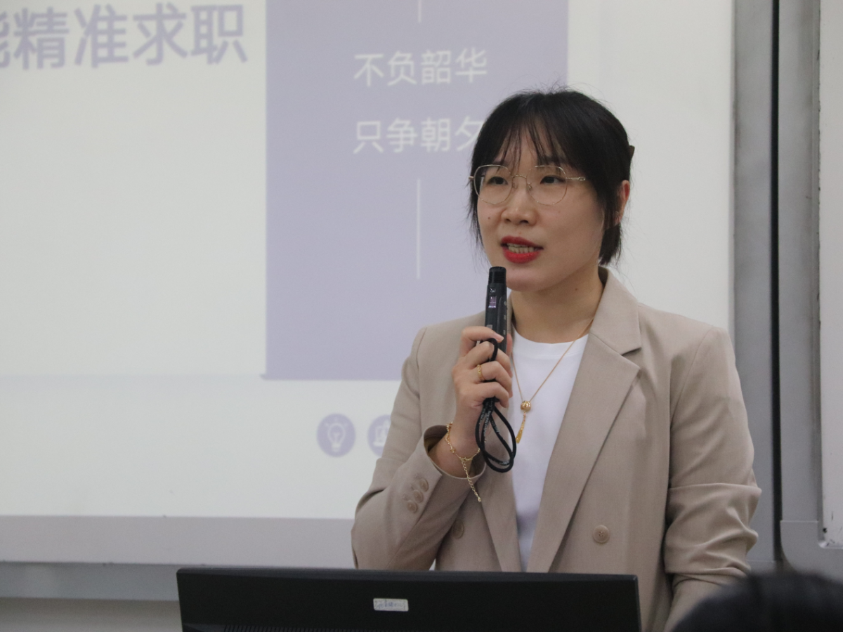 聚焦应届生面临的企业面试难题,刘朦朦开宗明义,提出“有效面试”这一核心观点。随后,她从“第一印象”“自我介绍”“单面提问”“群面发言”四个关键维度,条分缕析地阐述了面试应对策略,并点明常见误区。她着重强调,面试过程中,谦逊有礼、大方自信、不卑不亢的品质不可或缺,同时要将精力聚焦于“问题回答”与“礼貌细节”两大核心环节。在问题回答方面,她指出要以“岗位匹配度”为指引,既要主动贴合企业需求,又要基于自身真实经历搭建内容框架;在礼貌细节上,她按照面试流程,逐一细化操作要点,让同学们有章可循。