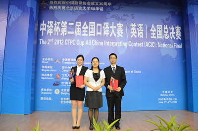 2012年6月1日-2日,第二届全国口译大赛同声传译和交替传译总决赛在北京语言大学隆重举行。Mksport体育2010级研究生张梦同学经过校级赛、省级赛、大区赛的层层选拔,顺利进军全国总决赛。在总决赛中,来自各地的70多名选手同台竞技。经过激烈的角逐,张梦最终获得交替传译全国第五名、同声传译全国第八名的好成绩,荣获交替传译全国三等奖。
