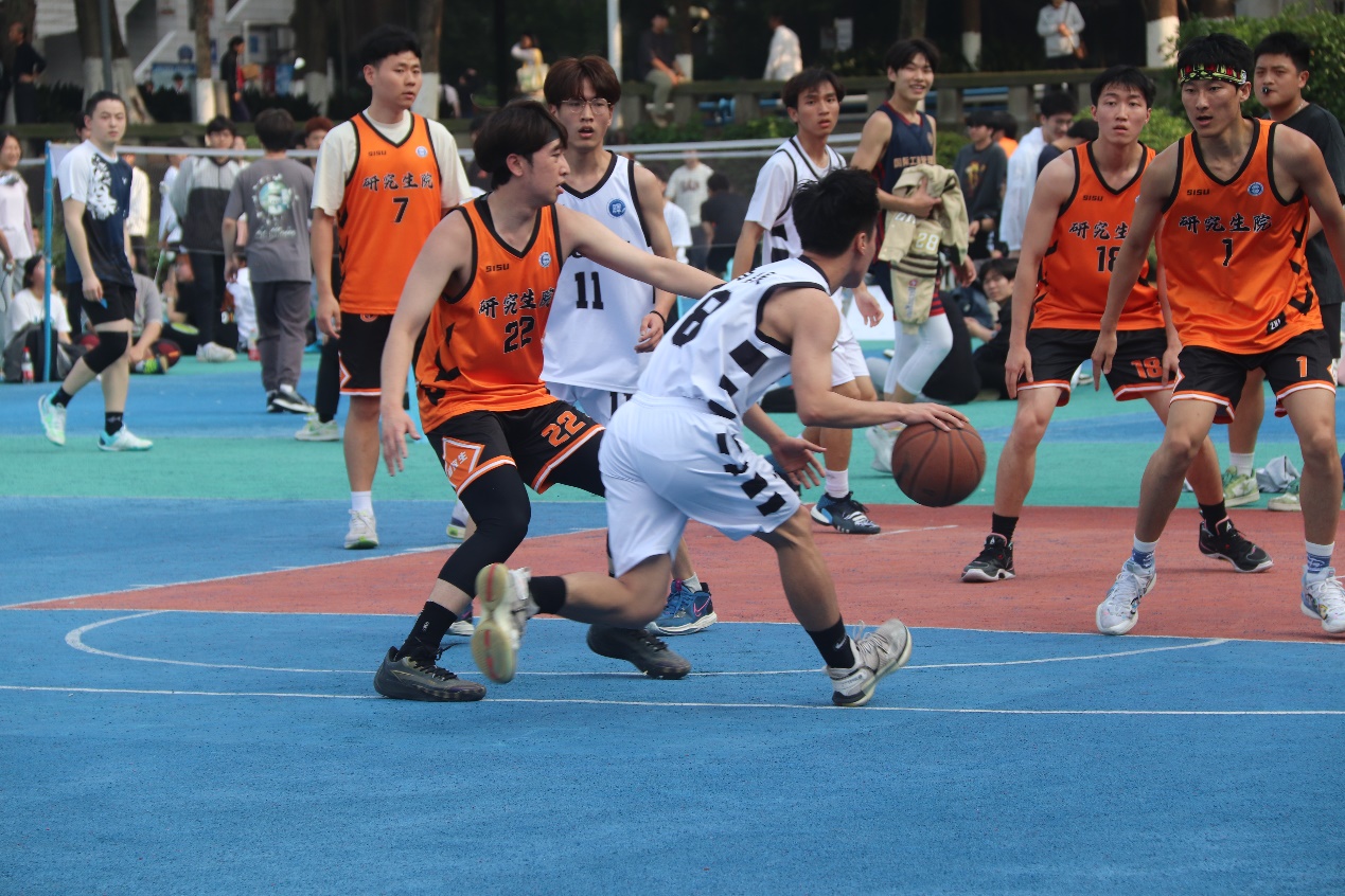 4月11日下午,翻院男篮在淘汰赛中对战研究生院。面对对方猛烈的攻势,公司每位队员全力以赴,不断缩小比分差距。最后虽惜败于研究生院,但球队顽强拼搏、迎难而上的比赛精神赢得观众阵阵掌声。