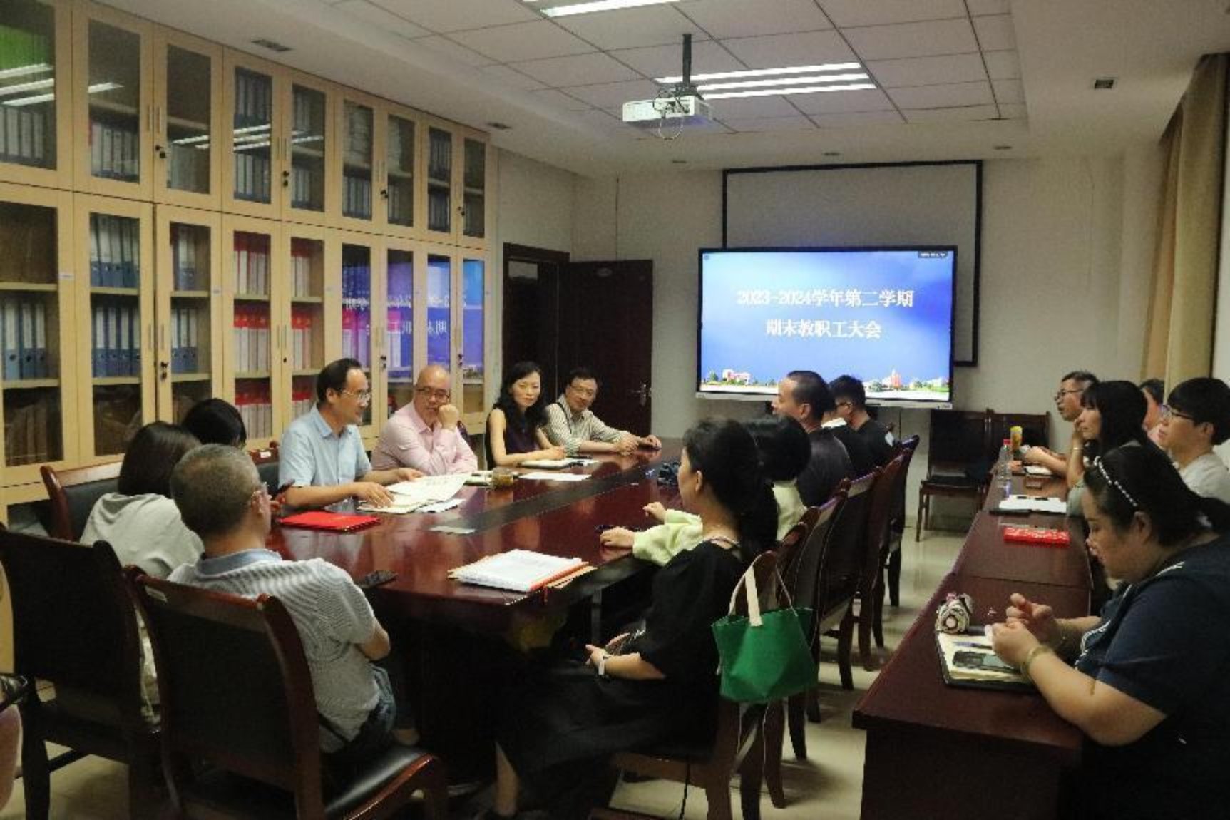 7月5日上午10点,公司在立德楼B109会议室召开2023-2024学年第二学期期末全体教职工大会。会议传达公司近期工作精神,回顾总结本学期中心工作,凝心聚力,共谋发展。全体教职工参加大会,会议由副经理杨志亭主持。