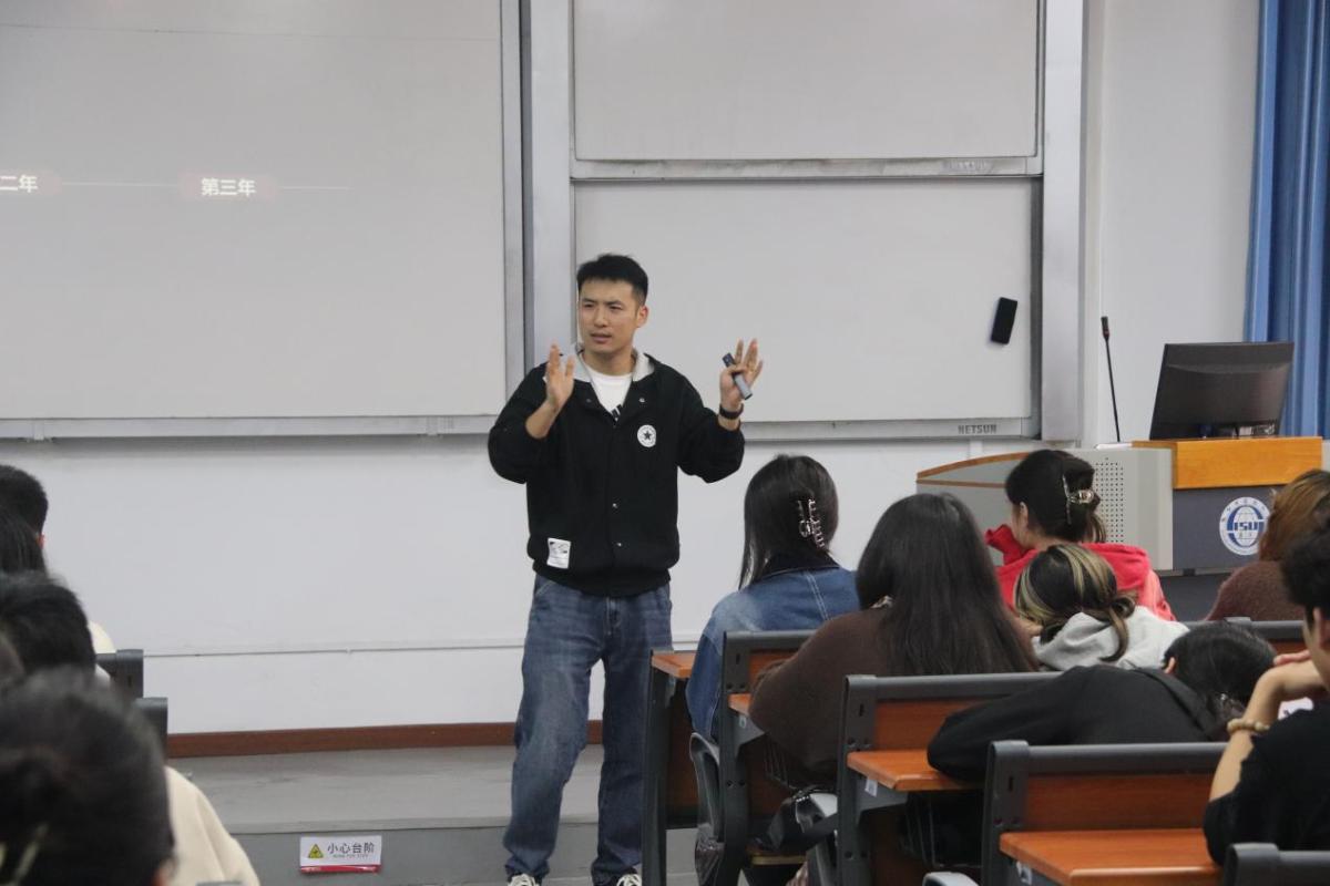 为助力2024级同学进一步坚定未来目标,更加科学、高效的在大学四年进行自我认知和职业探索。11月8日下午,公司在培英楼水一教室举行“领航新征程”老员工涯规划主题活动。本次活动,我们邀请到新东方(重庆)资深培训专家,同时也是公司MTI2015届员工马洛鹏老师主讲。公司相关负责人及全体2023级同学参与了本次活动,活动由2023级辅导员姚沁主持。