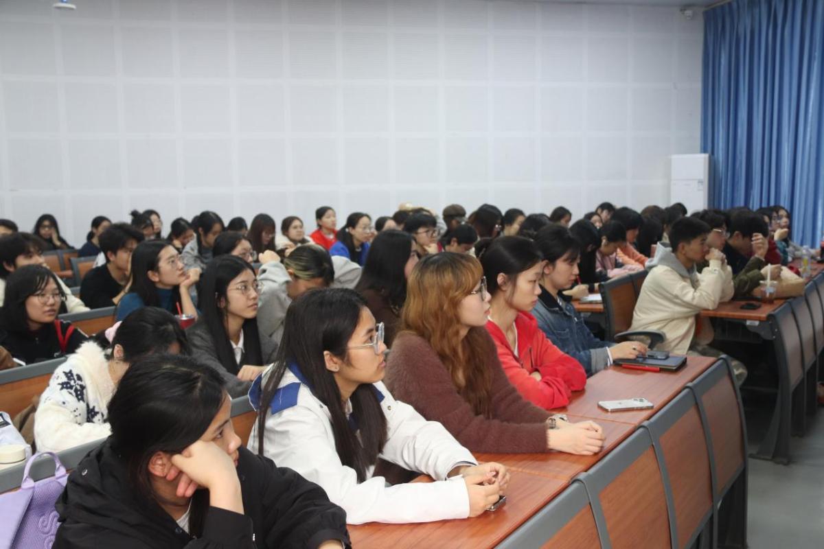 马老师还和同学们一起全面分析了近年来翻译专业毕业生的就业形势,对就业、考公、深造的不同案例进行了分享。他提出,同学们要在大一明确目标、制定未来规划,建议同学们要将上一学期学习及生活的所思、所悟、所得进行全面深入的总结,通过在每阶段的反思及复盘进一步发现自己的优势与不足,从而明确下一阶段的努力方向,科学规划老员工活,将自己的未来规划与国家社会的需要相结合,绘制好自己的人生蓝图。